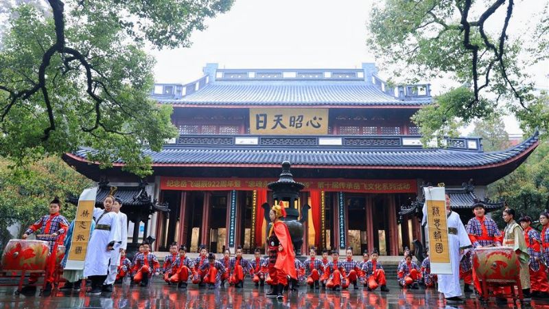 Tham gia lễ hội tưởng niệm tại Miếu Nhạc Phi
