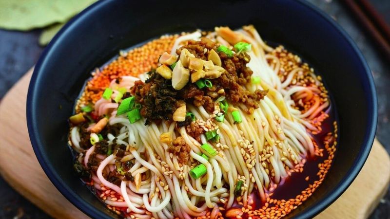 Đây là một trong những món ăn mang đậm phong cách của ẩm thực Tứ Xuyên. Món phở này nổi tiếng với sợi mì dai, nước sốt cay nồng đặc trưng từ dầu ớt và hoa tiêu. Món phở này người dân thường ăn kèm với thịt băm, đậu phộng rang và rau xanh, tạo nên hương vị béo - cay - mặn vô cùng hài hoà.
