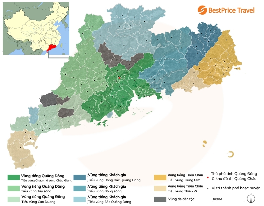 Bản đồ các nhóm ngôn ngữ ở Quảng Đông