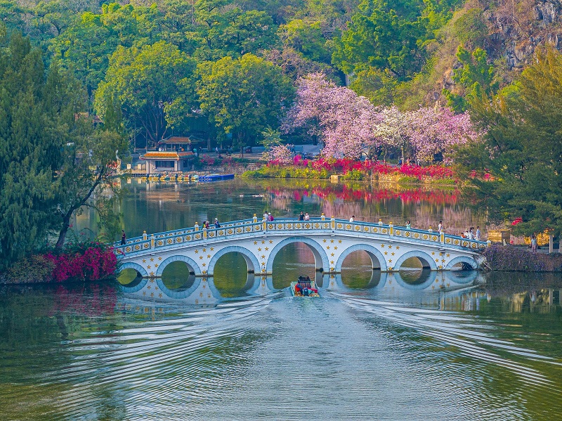 - Triệu Khánh (Zhaoqing): Nổi tiếng với cảnh quan thiên nhiên xanh mát, tiêu biểu là thắng cảnh Thất Tinh Nham và hồ nước, núi đá vôi mang đậm nét sơn thủy truyền thống, thích hợp du lịch nghỉ dưỡng – sinh thái.