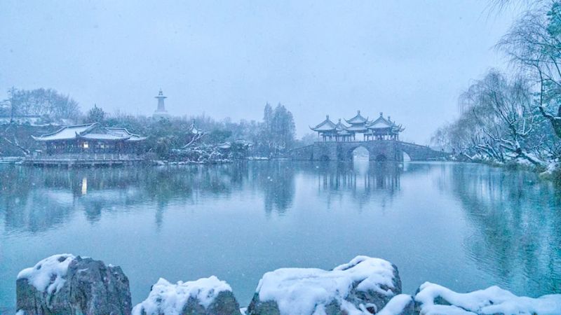 Khung cảnh mùa đông tuyết trắng ở Dương Châu (Ảnh: XHS@Scarlett)