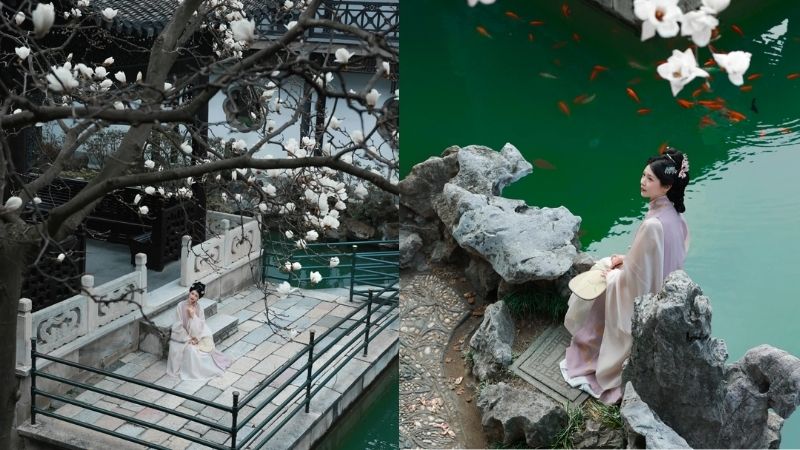 Khi tham quan vườn cổ có thể mặc các trang phục truyền thống hoặc đồ mang phong cách cổ phong sẽ đẹp hơn