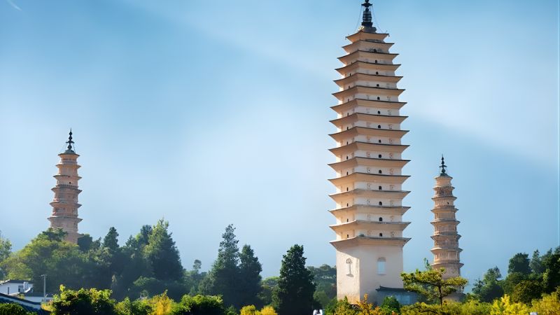 Chùa Sùng Thánh là điểm đến nổi tiếng với Tam Tháp Sùng Thánh, một biểu tượng lâu đời của Vân Nam Đại Lý. Công trình có lịch sử hơn 1.000 năm, mang đậm dấu ấn Phật giáo và trong thời kỳ Vương quốc Nam Chiếu và Đại Lý. Chùa có khuôn viên rộng rãi, yên tĩnh, phía sau tựa núi, phía trước hướng ra thành cổ tạo cảm giác thanh tịnh và trang nghiêm.