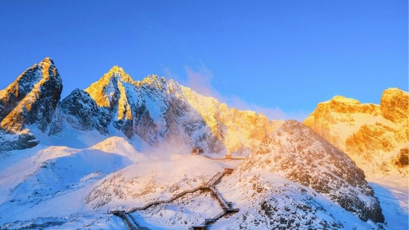 Hành trình khám phá Lệ Giang mùa xuân của bạn sẽ thêm trọn vẹn khi ghé thăm Ngọc Long Tuyết Sơn. Đây chính là thời điểm lý tưởng để trải nghiệm vẻ đẹp độc đáo giao thoa hai mùa - xuân dưới chân núi và đông trên đỉnh núi.