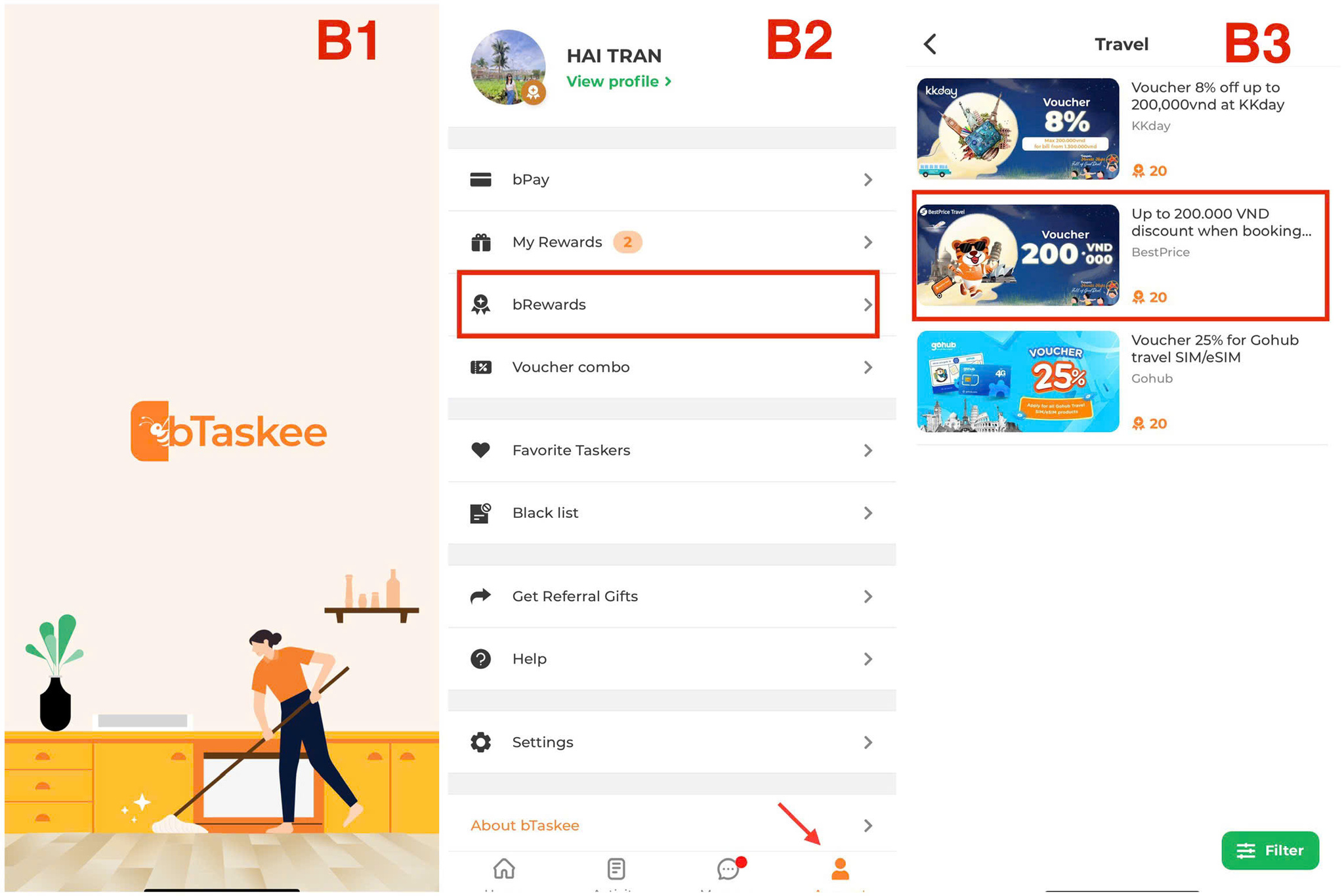 B1: Khách hàng truy cập App bTaskee.