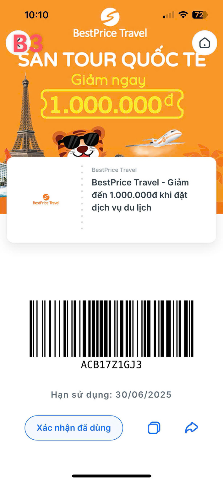 Đừng bỏ lỡ cơ hội vừa tiết kiệm chi phí, vừa trải nghiệm những hành trình du lịch đẳng cấp cùng BestPrice. Tải ngay ứng dụng ACB ONE, truy cập mục Rewards và khám phá loạt ưu đãi du lịch hấp dẫn và độc đáo. Cùng BestPrice và ACB, mỗi chuyến đi sẽ không chỉ là một kỳ nghỉ, mà là hành trình đáng nhớ trọn vẹn từ đầu đến cuối.