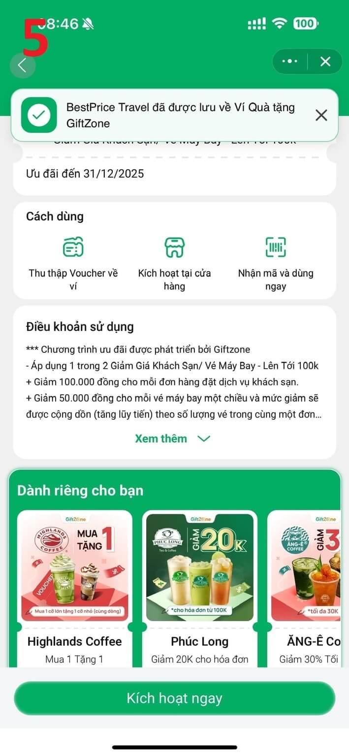 Từ tháng 8/2025, khách hàng có thể truy cập GiftZone để nhận ngay e-voucher giảm giá độc quyền từ BestPrice Travel. Những ưu đãi đặc biệt này bao gồm: