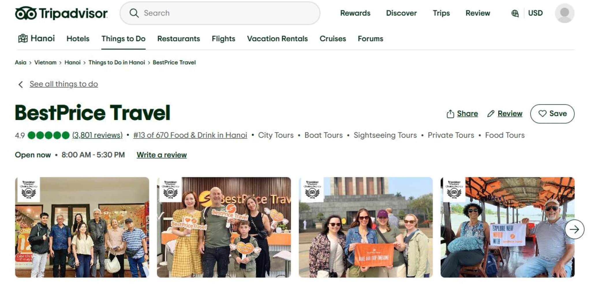 Đánh giá của khách hàng về BestPrice trên Tripadvior