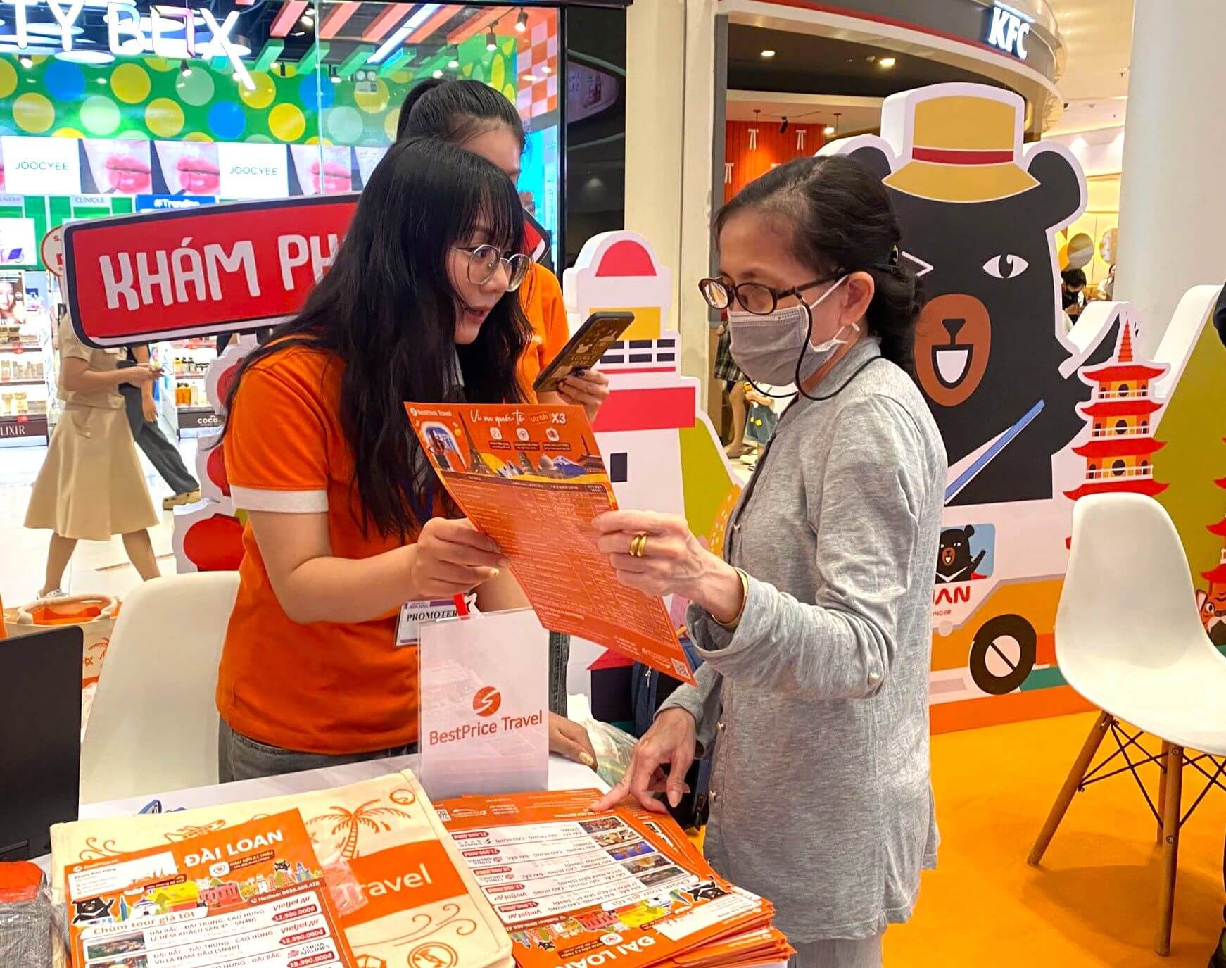 Trong khuôn khổ sự kiện tại Aeon Mall Tân Phú, gian hàng BestPrice Travel trở thành điểm dừng chân quen thuộc của nhiều du khách quan tâm đến du lịch Đài Loan. Không gian được thiết kế thân thiện, dễ tiếp cận, kết hợp giữa tư vấn chuyên sâu và các hoạt động trải nghiệm đã tạo nên bầu không khí sôi động trong suốt thời gian diễn ra Ngày hội Du lịch Đài Loan 2025.