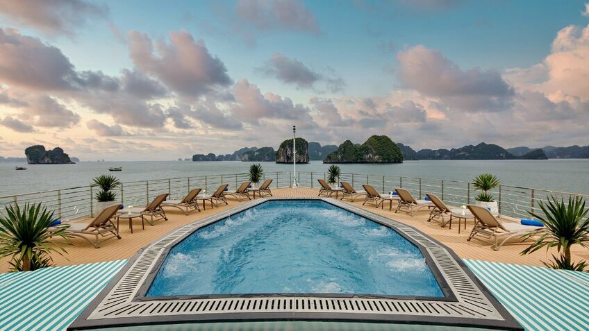 - Bể bơi nước mặn lớn nhất vịnh nằm trên tầng 2 của du thuyền