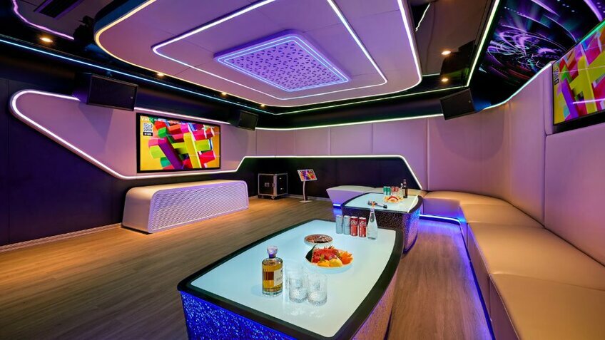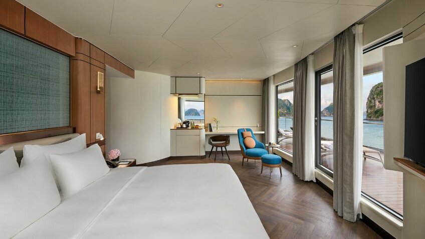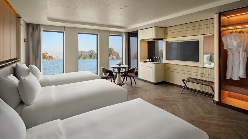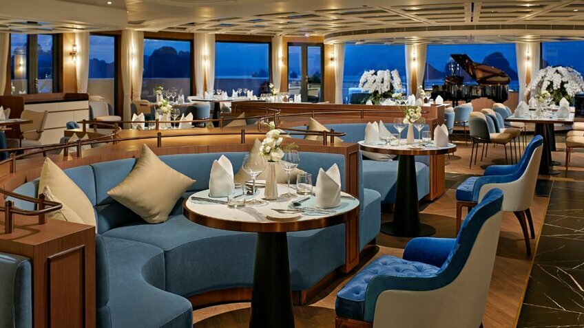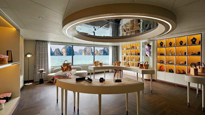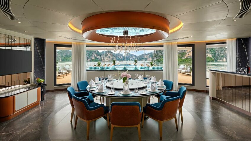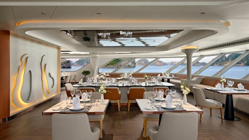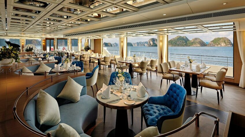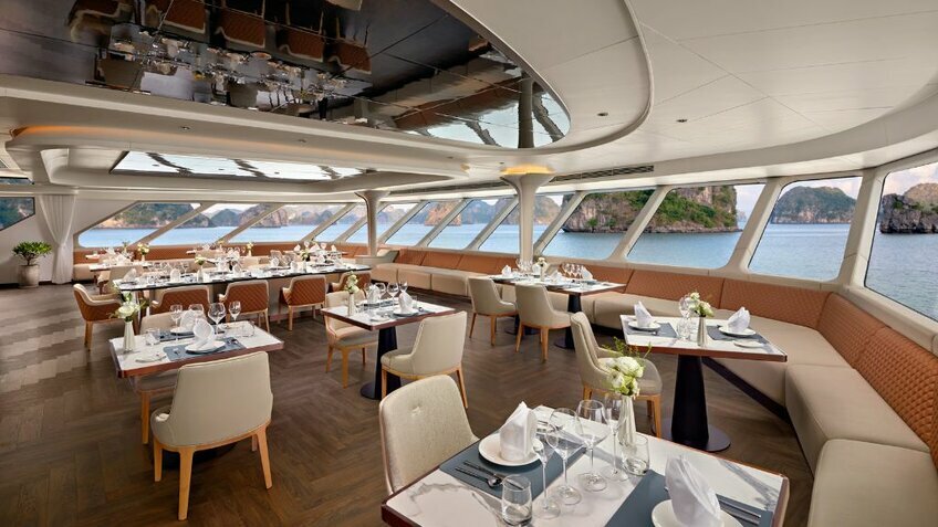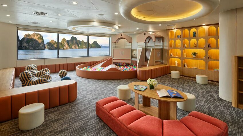 - Du thuyền có nhiều tiện ích nhất vịnh: Voyage Wine & Cigar Lounges, Kids Club, phòng Karaoke, phòng Golf 3D, phòng chiếu phim...