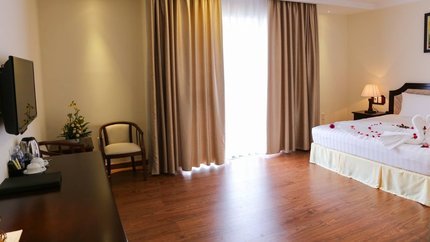 - Mô tả: Phòng Superior có view nhìn ra thành phố sôi động. Phòng được trang bị đầy đủ tiện nghi đáp ứng nhu cầu nghỉ dưỡng của du khách. Lựa chọn hạng phòng này du khách có thể tùy chọn giường đôi 1m6 hoặc 2 giường đơn 1m4.