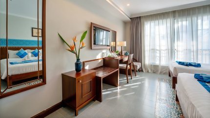 Dạ chào anh Minh, cảm ơn anh đã quan tâm đến dịch vụ của BestPrice. Phòng của khách sạn có cho phép kê 1 giường phụ ạ. Để được tư vấn chi tiết, anh vui lòng liên hệ số hotline 1900 2605 của BestPrice ạ. Cảm ơn anh.