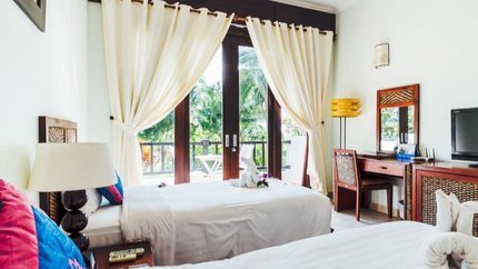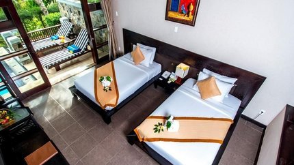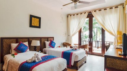 - Mô tả: Hạng phòng này có view hướng vườn, được thiết kế gần gũi với thiên nhiên. Trong phòng được bố trí 1 giường đôi hoặc 2 giường đơn, cùng đầy đủ tiện nghi. Phòng có ban công với bàn ghế cho du khách ngắm cảnh vườn. Sức chứa của hạng phòng này là 2 người lớn cùng 1 trẻ em.