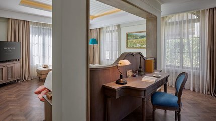 Mercure Dalat Resort tọa lạc tại Khu vực Ga Tàu Cổ cách Chợ Đà Lạt 10 phút, Mercure Dalat Resort ẩn mình trong những khu vườn xanh mát giữa lòng thành phố với những di sản kiến trúc có niên đại hàng chục năm. Mercure Dalat cung cấp 131 phòng và dãy phòng với 5 loại phòng khác nhau. Mercure Dalat Resort được ưa chuộng bởi những biệt thự được thiết kế tinh tế theo lối kiến trúc Pháp cổ, với những câu chuyện tình yêu lãng mạn, sẽ giúp Quý khách trở về với những giá trị văn hóa và những câu chuyện tình yêu của vùng đất từ những năm 1920 này.