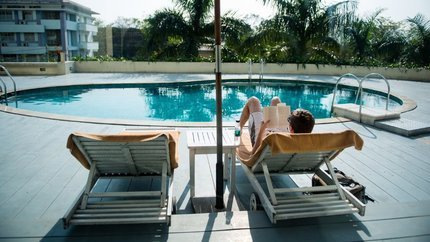 - Bể bơi ngoài trời mở cửa từ 6h - 22h, có phục vụ đồ uống tận nơi và khu vực cho trẻ em.