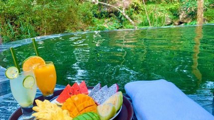 Xin chào anh Huy ạ, cảm ơn anh đã quan tâm đến dịch vụ của BestPrice. Khu nghỉ dưỡng có bể bơi ngoài trời hòa mình vào thiên nhiên núi rừng vô cùng thư giãn ạ. BestPrice xin thông tin đến anh.