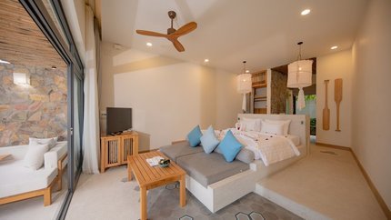 Quê Tôi Village nằm trải dài quanh bờ biển vịnh Xuân Đài, tỉnh Phú Yên. Khu nghỉ dưỡng có 25 villa riêng biệt nằm trên bãi biển với diện tích rộng rãi và phong cách thiết kế tối giản hài hòa với nội thất được làm bằng chất liệu tre, gỗ tạo nên cảm giác gần gũi và nhẹ nhàng. Đến nơi đây du khách sẽ được trải nghiệm những dịch vụ đẳng cấp như spa thư giãn, nhà hàng, bể bơi,... ngoài ra, du khách được tham gia những hoạt động thú vị như: chèo thuyền kayak, đạp xe,... Khi nghỉ dưỡng tại đây du khách sẽ được tận hưởng khoảng thời gian thư giãn, thoải mái tuyệt đối.
