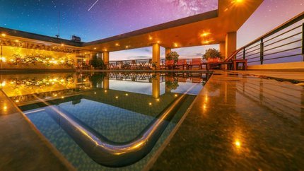 • Bể bơi ngoài trời ở sân thượng bên cạnh quầy bar.