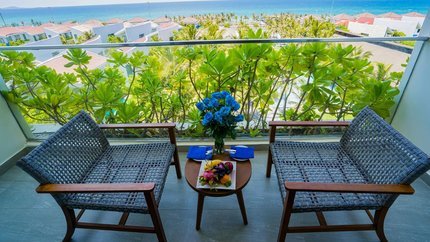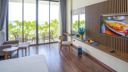 - Mô tả: Hạng phòng này có thiết kế view biển và có ban công rộng rãi cho du khách ngắm cảnh đẹp bãi biển. Trong phòng được trang bị với 1 giường đôi hoặc 2 giường đơn. Sức chứa 2 người lớn và 1 trẻ em.