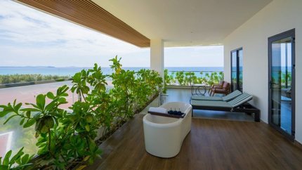 - Mô tả: Phòng Studio có diện tích rộng rãi với 45m2, cùng ban công rộng lớn với view bao quát bãi biển xinh đẹp. Trong phòng có đồ nội thất sang trọng, bồn tắm nằm cho du khách thư giãn. Khu vực ban công có ghế ngồi cho du khách tắm nắng, thư giãn.