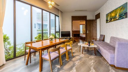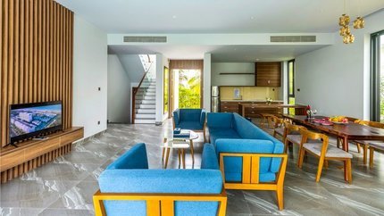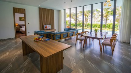 - Mô tả: Villa 3 phòng ngủ được trang bị đồ nội thất sang trọng và được ngăn cách phòng bếp, phòng ngủ và phòng khách riêng. Hạng phòng này có hồ bơi riêng và sân hiên cho du khách thư giãn mỗi ngày. Đặc biệt, từ villa du khách chỉ cần di chuyển vài bước chân đi bộ là tới được bãi biển.