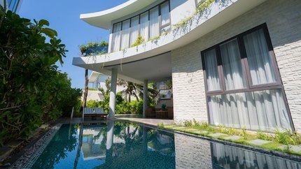- Mô tả: Biệt thự gồm tất cả 4 phòng ngủ, trong phòng được bố trí với 3 giường đôi và 2 giường đơn. Phòng có view hướng biển cùng với sân vườn và hồ bơi riêng. Hạng phòng này thích hợp cho gia đình hoặc nhóm bạn gồm 6 - 8 người lớn. Du khách có thể dễ dàng di chuyển tới bãi biển từ villa chỉ vài phút.