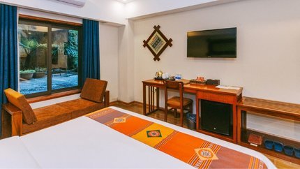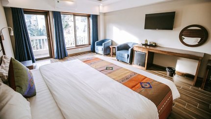 - Mô tả: Hạng phòng này có view chéo núi, thung lũng hoặc thị trấn, với khung cảnh thiên nhiên tuyệt đẹp. Phòng gồm 2 giường đơn hoặc 1 giường đôi. Sức chứa 2 người lớn và 1 trẻ em. Phòng có thiết kế với không gian ấm cúng, rèm và ghế sofa có tông màu xanh thanh lịch.