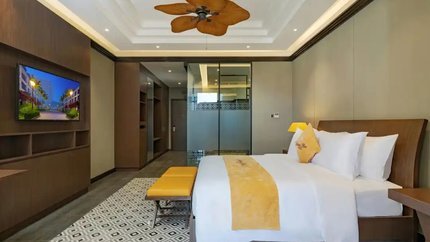 - Mô tả: Hạng phòng này được thiết kế với không gian ấm cúng, trong phòng có 2 giường đơn hoặc 1 giường đôi. Mặt sàn của phòng được ốp gạch hoa với tông màu trang nhã. Phòng tắm rộng rãi với cửa kính trong suốt. Hạng phòng này được thiết kế với ban công rộng rãi và thoáng mát. Sức chứa 2 người lớn và 1 trẻ em.
