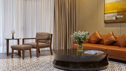 - Mô tả: Hạng phòng Executive Suite có diện tích rộng 86m2, được kê 1 giường đôi rộng rãi cho 2 người lớn. Hạng phòng này được phân thành phòng ngủ và phòng khách riêng với không gian riêng tư. Phòng khách được bố trí với bàn ghế sofa và bàn ăn gồm 4 chỗ. Phòng có cửa sổ rộng lớn và view ngắm cảnh thành phố.