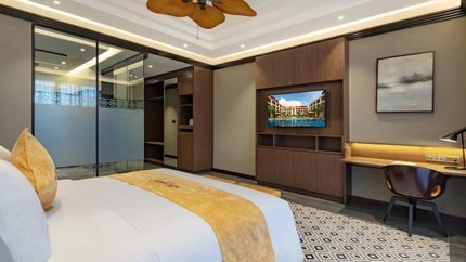 - Mô tả: Premier Suite được bố trí với 1 giường đôi rộng lớn, với đầy đủ tiện nghi sang trọng cho du khách nghỉ dưỡng. Hạng phòng này có 3 không gian riêng biệt đó: phòng khách, phòng ngủ, phòng tắm. Điểm nhấn của hạng phòng này là bồn tắm nằm rộng rãi cho du khách thư giãn. Sức chứa phù hợp cho 2 người lớn.