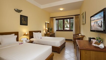 Dạ chào anh Tùng, cảm ơn anh đã quan tâm đến dịch vụ của BestPrice. Resorrt có các hoạt động ngoài ãi biển như bóng chuyển, bóng đá,... đó ạ. Để được hỗ trợ đặt phòng, anh vui lòng liên hệ số hotline 1900 2605 của BestPrice ạ. Cảm ơn anh.