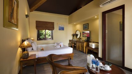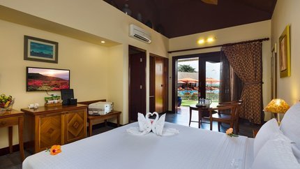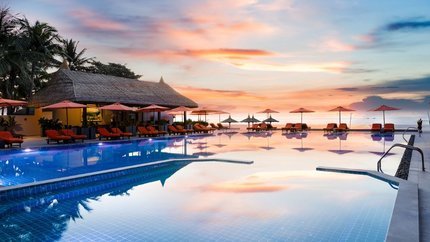 - Hồ bơi ngoài trời rộng lớn và bãi biển riêng