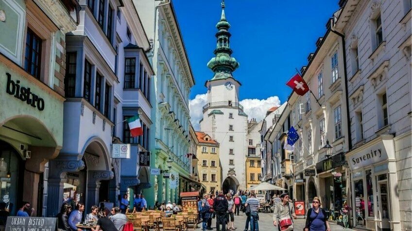 Sau bữa tối tại nhà hàng địa phương, quý khách có thể tản bộ dọc phố cổ Bratislava, ngắm ánh đèn phản chiếu trên những tòa nhà cổ kính và cảm nhận nhịp sống yên bình của thành phố bên sông Danube.
