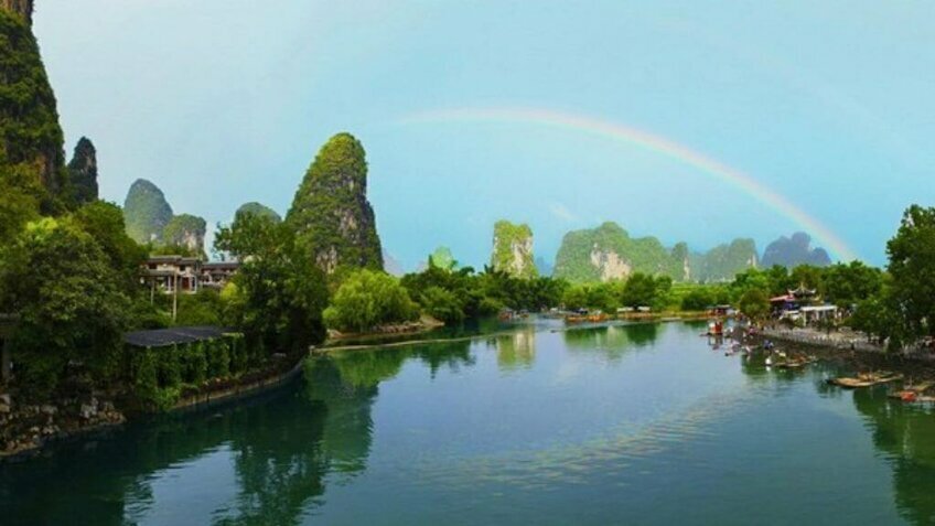- Trải nghiệm du thuyền bằng bè dọc theo dòng Ngọc Long ngắm cảnh non sông Quế Lâm
