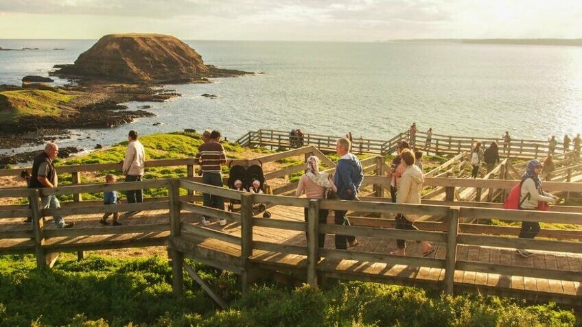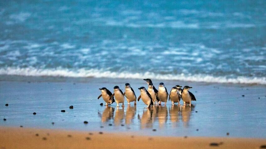 Khi hoàng hôn buông xuống, du khách sẽ có mặt tại Penguin Parade, nơi diễn ra màn diễu hành của hàng trăm chú chim cánh cụt tí hon trở về tổ sau một ngày kiếm ăn trên biển. Từ khu vực quan sát an toàn, du khách sẽ được chứng kiến khoảnh khắc dễ thương khi từng đàn chim lạch bạch bước lên bờ dưới ánh hoàng hôn dịu nhẹ.