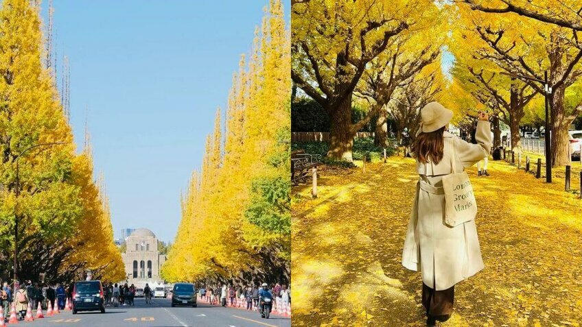 - Check-in tại các địa điểm mùa thu nổi tiếng như công viên hoa Oishi, đường hầm lá phong Momiji Kairo và đại lộ lá vàng Ichou Namiki.
