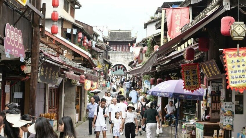 - Du khách dạo bước ở Trấn Viễn Cổ Thành hơn 2000 năm tuổi, nơi lưu giữ sự giao thoa văn hóa của hơn 20 dân tộc.