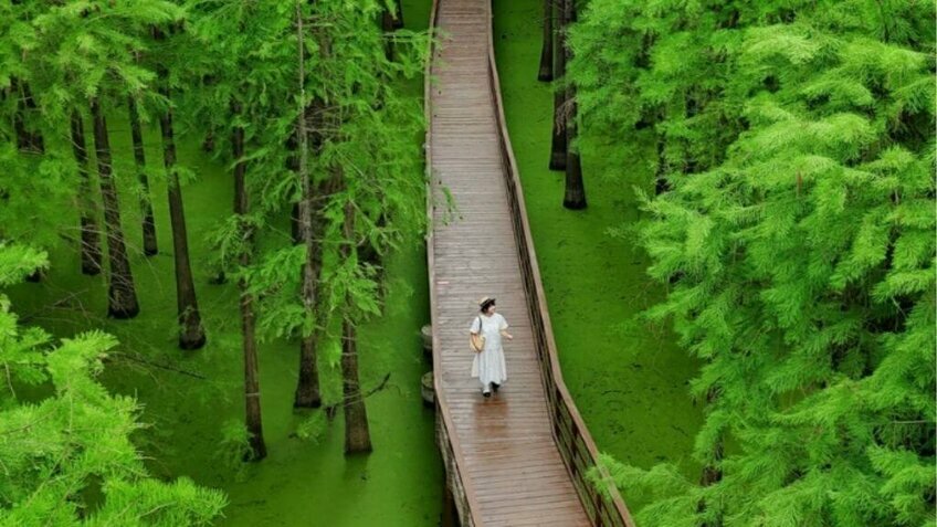 - Thưởng ngoạn cảnh sắc Tây Hồ và Đầm lầy Thanh Sơn – “khu rừng ngập nước matcha” độc đáo.